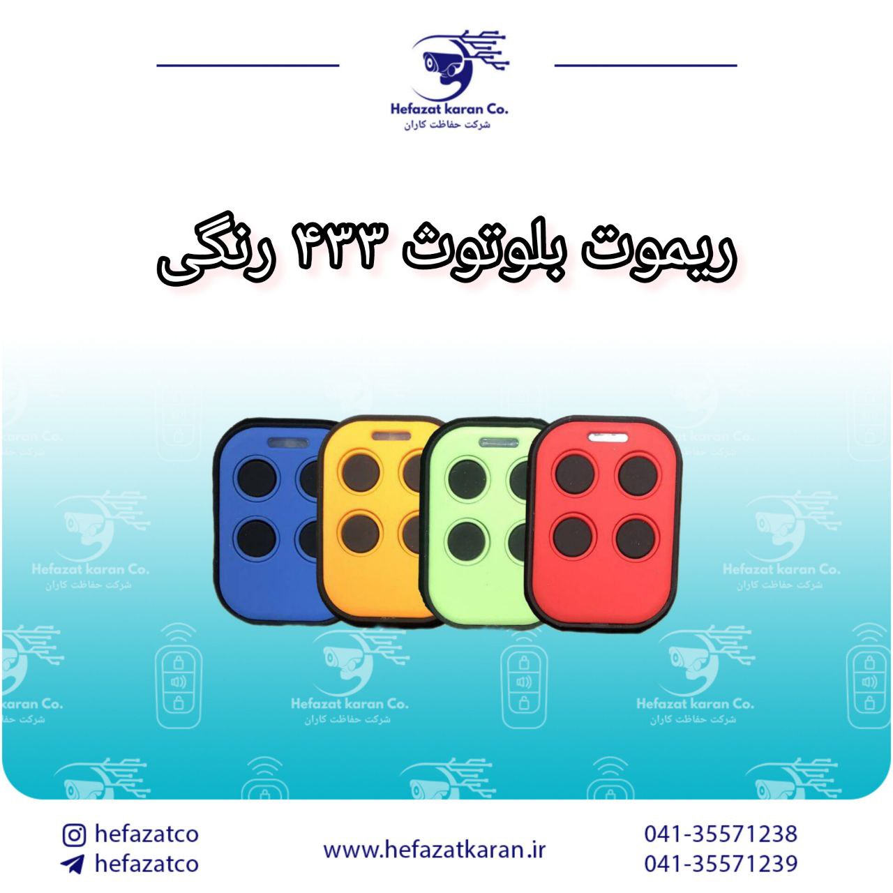 ریموت کنترل بلوتوثی فرکانس 433mhz طرح رنگی ضدآب مناسب کپی کردن ریموت های درب اتوماتیک کرکره ای پارکینگ یا جک های پارکینگ یا برد رله های صنعتی یا دزدگیرهای با فرکانس 433 لرنینگ
